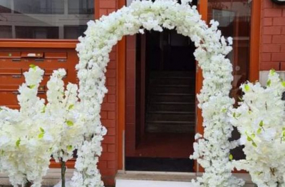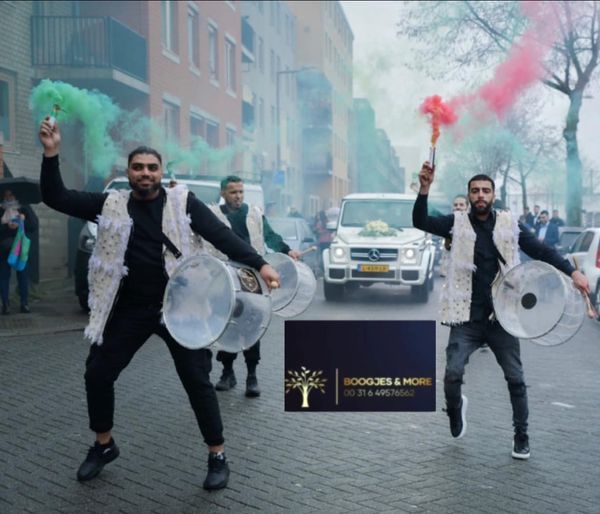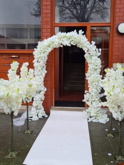 Bloemenbogen/ Witte en Rode lopers/ Rookfakkels en fonteinen/ Backdrops/ Bankjes/ Tafeldecoratie (inclusief tafels en stoelen)