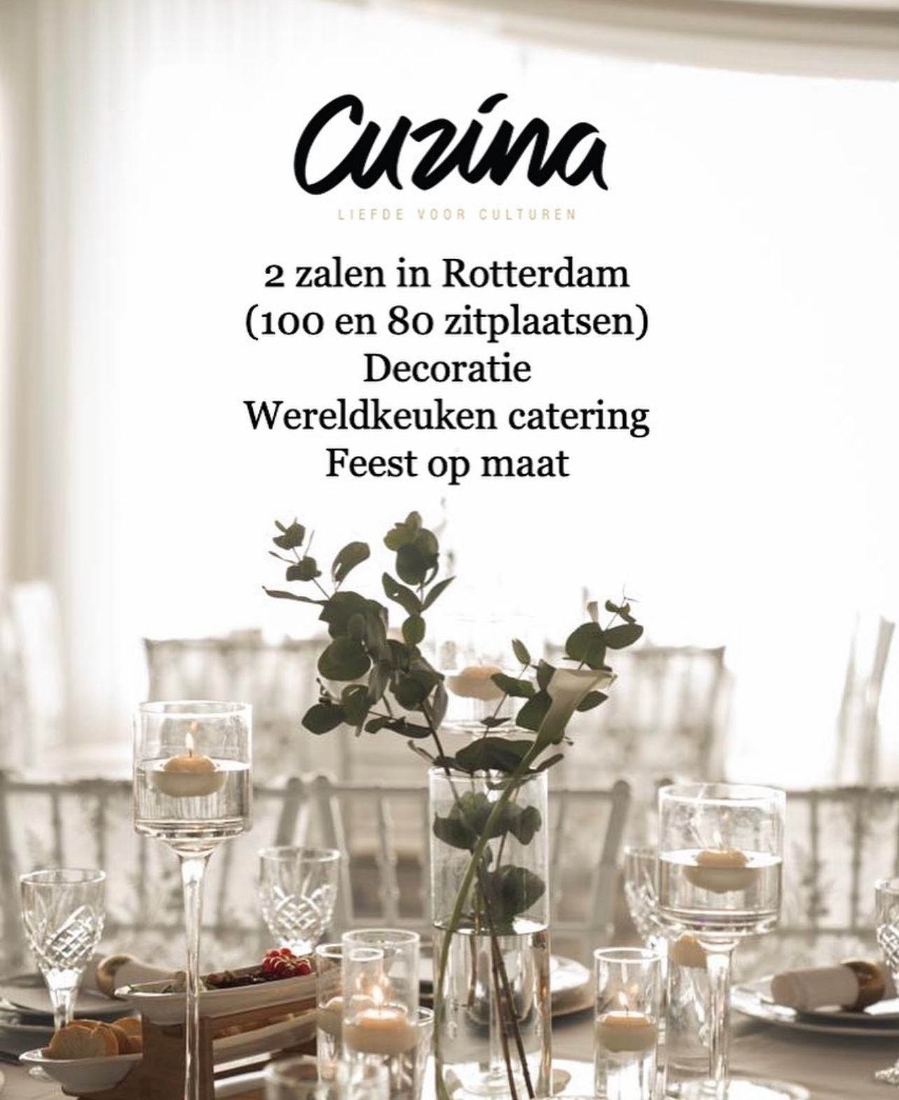 Viert u uw verjaardag, verloving, bruiloft, babyshower, jubileum of afstudeerfeestje? Of heeft u misschien gewoon zin in een feestje? Bij Cuzina kunt u terecht voor elke gelegenheid. Onze sfeervolle en unieke locatie is hiervoor de perfecte plek.